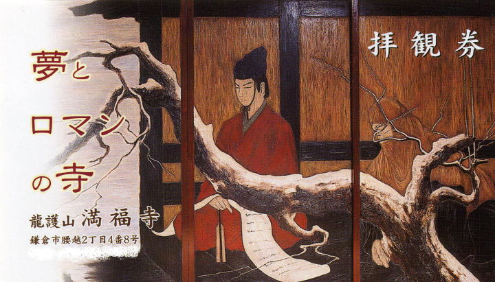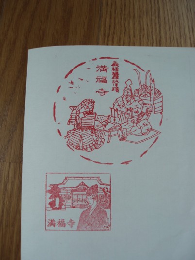 腰越・満福寺拝観券と記念スタンプ 向かうはもちろん満福寺(前回旅行記参照)。鎌倉彫の襖絵の義経様は、何度でもいつまでも見つめていたくなる麗しいお姿です。前回は拝観志納でしたが、いつからか(大河を期に?)拝観料が必要になったよう。でもかわりに義経様の写真入りの拝観券がもらえます。これは嬉しい! 記念スタンプもあります。下のほうの絵柄は、襖絵がモチーフと思われる憂い顔の美しい義経様。う〜ん、超好みです。(笑) 拝観時間/9:00〜17:30 拝観料/¥200 |