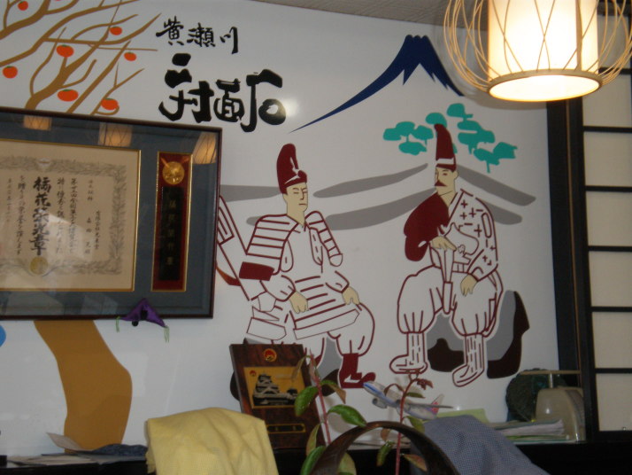光来堂・店内 光来堂の看板商品は「源氏双柿」。柿の餡をサンドしたスポンジをホワイトチョコで薄くコーティングした、ぱっと見和菓子ふうなのに洋菓子というのが珍しくも美味しいロングセラー銘菓。全国菓子博覧会金賞受賞、伊勢神宮遷宮献上銘菓でもあります。 もうひとつのゆかり銘菓「黄瀬川対面石」は求肥入りのつぶあん最中。とろけるようにやわらかなつぶあんが美味しい!最中の表面には黄瀬川と富士山が描かれています。こちらも全国菓子博覧会金賞受賞の登録銘菓です。 店内には「源氏双柿」の紹介や兄弟対面石の大きな絵が飾られていてテンションあがります。富士を背景に感動の再会を果たす源氏兄弟…つくづく絵になるシーンですねえ!頼朝のお顔が髭のニュアンスのせいか明治軍人チックになってるのもちょっとカワイイ。 |
