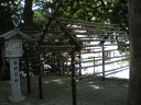 白旗神社・絵馬掛 三島大社の頼朝絵馬がうらやましいな〜と思っていたら佐野様から耳より情報!この白旗神社でもオリジナル絵馬を制作中とのこと。私たちが訪れた時にはまだ完成していませんでしたが、絵馬を結ぶ場所もすでに設置されていて、いよいよという感じです。義経の絵柄だといいな〜! |