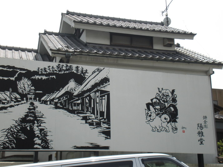 鎌倉彫の店「陽雅堂」の看板・弁慶 白旗神社をあとにして江ノ電に乗り、いざ鎌倉へ。江ノ電は観光客で大混雑です。鎌倉駅から若宮大路、小町通はますます人でゴッタ返してます。私は一度目の鎌倉訪問はまだ寒い2月、二度目は頼朝台風(大笑)で「混雑している鎌倉」というのをまだ見たことがなかったので、なんだか新鮮な感じです。 前回もチェックした鎌倉彫のお店「陽雅堂」の看板は、弁慶とワンコのツーショットのものが新たに加わってました。(前の看板も別のところにちゃんとあります) |