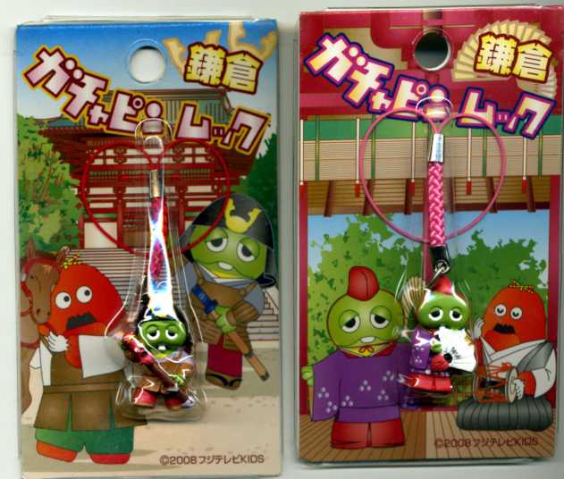 ガチャピンムックー!!(義経&静・各¥450)京都バージョンも大概だったがこれはこれでまた極めてる感がすごい。よく見るとガチャピン義経の刀の柄の部分がムック。何の意味が。しかも台紙の絵をみるとこのシーン、あの屈辱の馬引き事件のようにもみえる。どういうチョイスか。ガチャピン静にいたってはもう、こんなアンニュイな舞をみせられたら頼朝は怒るどころか脱力のあまり出家しちゃうかも。 |