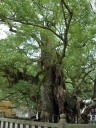 大楠 境内には鬱蒼とした太古の森を思わせる楠木の大樹が群生しています。大三島は楠木、杉など巨木の群生地であり、古来より水軍の船の材料として重宝されてきました。 なかでも目を引くのがこの「小千命(おちのみこと)御手植の楠」と呼ばれる大楠。大山積神の子孫である小千命がこの神社を創建した際に手ずから植えられたものと伝わり、樹齢は推定2600年余を数えるそうで、大樹マニア(?)でもある私としてはたまりません。源平時代はもちろん紀元前の昔から、この地でさまざまな時代の人々の暮らしや出来事を見届けてきたのでしょう。 |
