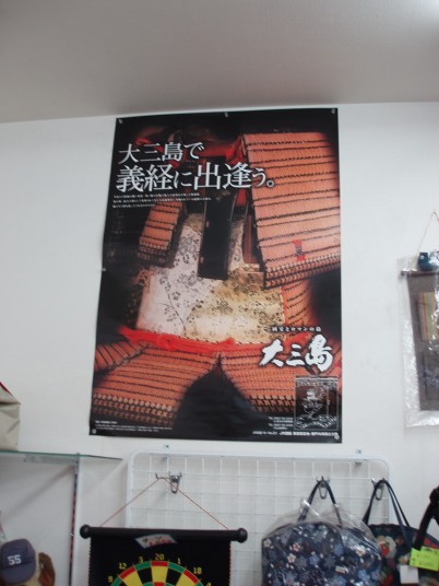 大三島観光ポスター 神社周辺の飲食店やお土産物屋さんの店内にはこんな嬉しいポスターが!「大三島で義経に出逢う」!あの鎧はたしかに「義経に逢えた」という実感と満足感が得られます。 そういえばこの地は伊予国、義経も名ばかりとはいえ伊予守でした。宝物館の展示にもわざわざ「伊予守」源義経と記されていましたし…。伊予の人々は、この地を風のように駆け抜けていった義経のことをどのように思っているのでしょう?奉納鎧を通じて、希代の英雄・源義経を愛しく特別な存在として大切に思ってくれているといいなあ… |