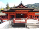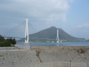 しまなみ海道・多々羅大橋 まずは瀬戸内海の島々を結ぶ「しまなみ海道」を通って大山祇神社をめざします。岡山県JR福山駅から長距離バス「しまなみライナー」に乗り、大小さまざまの島影やみかん畑を眺めながら揺られること1時間弱、大三島BSへ。そこから路線バスに乗り換えて10分ほどで大山祇神社前に到着します。 写真は大三島BSから見える多々羅大橋。広島県と愛媛県の県境にかかる世界最長の斜長橋です。大山祇神社のある大三島は愛媛県の最北端に位置する芸予諸島の中で最大の島です。 しまなみライナー/JR福山駅→大三島BS:¥1700・約52分 瀬戸内海交通バス/大三島BS→大山祇神社前:¥260・約12分 |