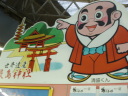 源平絵巻(義経鎧¥1550?)←すいません値段ウロ覚え… 弊サイトグッズコーナーでも紹介している武具フィギュア「源平絵巻」、通常は買って箱を開けるまで何が入ってるかわからないのですが、宮島のお土産物屋さんでは中身が見られる良心的な箱に入って並べられていました。なかにはシークレット品「義経鎧」も!大三島であの鎧を見てしまってはもう買うしかないでしょう。ほかの商品(\700ほど)よりは割高ですが、ネットオークション等で買うよりはずっとお得。私は下の写真のように別売の兜もセットディスプレイして部屋に飾ってます。幸せ♪ |