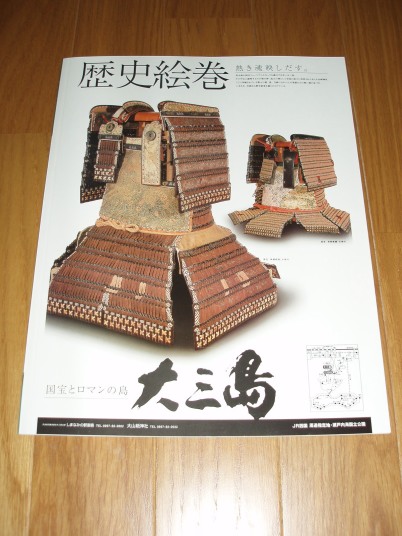 「大山祇神社・図録」¥2000/「週刊神社紀行特装版・大山祇神社」¥560 図録には展示物の紹介と詳細な説明文が載っていてとても便利。表紙は河野通信奉納の甲冑です。義経の鎧、頼朝の鎧もそれぞれ一ページのグラビアを使って別格扱いで紹介されています。 週刊神社紀行の表紙には燦然と輝く義経の鎧!裏表紙は頼朝兄上の鎧、そして背後にひっそり義経鎧。「お前は引っ込んでろ!俺より前に出てくんな!」とでも言いたげな位置関係が笑えます。 裏 ![]() |