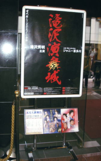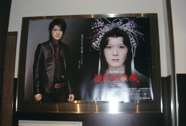 大河「義経」でタッキー義経にハマり勢い余ってタッキーファンになっちゃった人手を挙げてー!ハーイッ!…というわけでさっそく遠征してまいりました滝沢「城」(東京新橋演舞場3月~4月公演「滝沢演舞城」)へ。義経物語はじめ昔話や歌舞伎といった“和”をテーマに、平成のアイドル滝沢秀明君が日本の伝統美を繊細かつダイナミックに体現します。 舞台は二幕三部構成、われらが滝沢義経が登場する「義経」のコーナーは第二幕第二部。大河「義経」が終わって寂しさばかりがつのるこの時期に「ナマ」滝沢義経に出会えるなんて、なんと心にくいプレゼントでしょう。 |