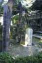 吉水神社・義経と静の別れ 書院の庭には義経と静の別れを標す碑が立っています。吉野山は女人禁制の修験の地、それでなくても女の足には余りに過酷な道のりです。そのうえ弁慶とかが「女をつれていくなんて…!」とやたらブーブー言ってます。悩んだ末義経は静を帰すことを決断、静は泣く泣く吉野をあとにするのでした。日本史上に燦然と輝くベストカップルの、ここが今生の別れの場でありました。再会を誓い合いつつもお互いもう二度と合えないことを察していたであろうふたりの悲しみを思うと胸がふさぎます。 |