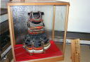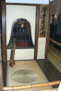 吉水神社・弁慶の籠手 お次は弁慶の籠手です。さすが大きい!その奥は義経の鐙。右横にちら〜っと見えているのは静御前の鎧(腹巻)です。 |