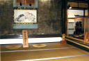 吉水神社・義経潜居の間 吉水神社の書院は初期書院造の特徴がよく残された重要文化財で、室内にもたくさんの宝物・古美術を蔵しています。 写真は「義経潜居の間」といわれる室町初期の改築です。ここですごした数日の間に九郎は郎党たちと今後の身のふり方を考えたり静といちゃついたり弁慶に「ええかげんにしなさい」と怒られたり、いろいろ忙しかったことと思われます。 書院見学¥400/営業時間9〜17時/冬季不定休 |