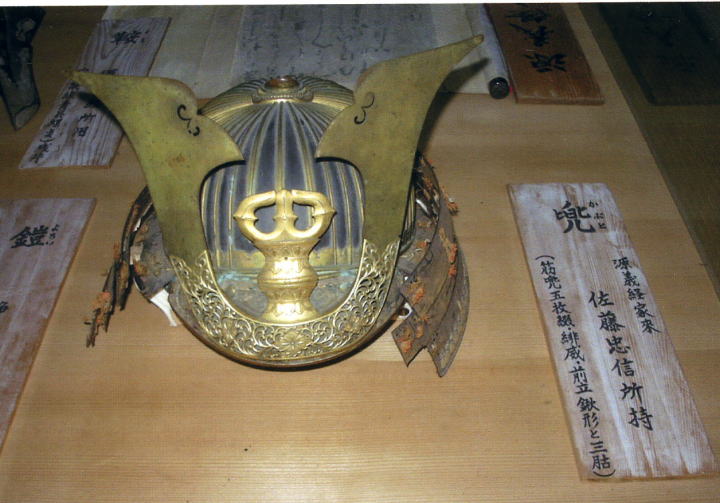 吉水神社・佐藤忠信の兜 佐藤忠信のものと伝わる兜。義経逃避行最初のビッグステージ・吉野山における一番のヒーローはまちがいなくこの佐藤忠信でしょう。 |