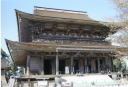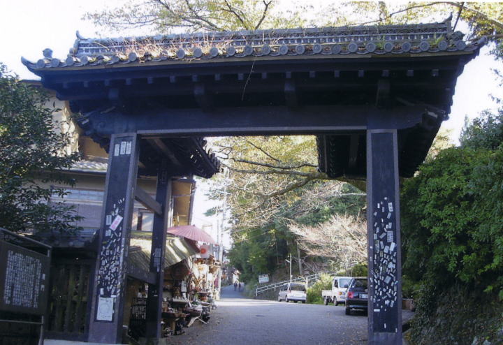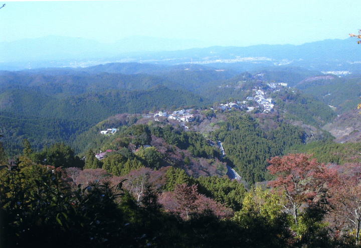 黒門 藤尾坂から銅(かね)の鳥居をすぎるとまもなく吉野の総門である黒門です。ここをくぐればすぐロープウェイ乗り場、吉野の旅も終わりです。来た道を振り返り振り返りゆるやかな下り坂を歩いていると、義経の行く末を恋いつつひとり立ち去る静御前のせつない胸中がしのばれる気がしました。 |
