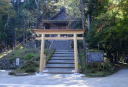 奥千本・金峯神社(きんぷじんじゃ) 近鉄吉野駅からロープウェイ・マイクロバスを乗り継ぎ、まずは一気に奥千本まで乗りつけます。そうすれば歩きはすべて下りになるのでラクチン。逆に吉野駅から奥千本をめざす場合は全行程が上り坂(しかもけっこう急勾配)になるので、健脚自慢の方以外にはとてもおすすめできません。ラクすることばっかり考えている私はこの地でさんざん苦労した静御前や義経主従に顔向けできませんな…。 バスは20分ほどで終点・奥千本口は金峯神社前に到着します。金峯神社は吉野の地主神である金山毘古命(かなやまひこのみこと)を祀っています。 |